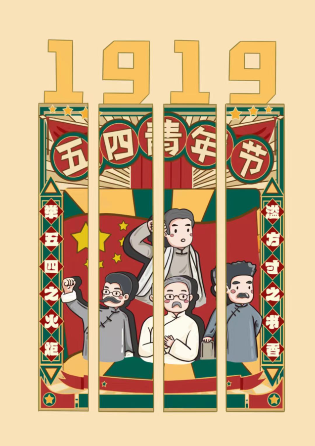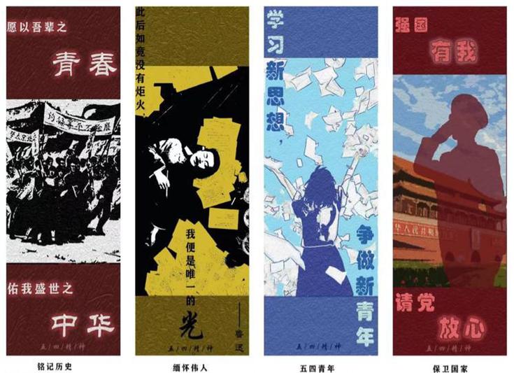 22级视觉传达专业1班王可心设计的书签,从“五四运动”代表人物出发,旨在鼓舞广大青年紧跟先贤步伐,树立远大理想,不负韶华,不负时代,以奋斗姿态激扬青春、实现梦想。