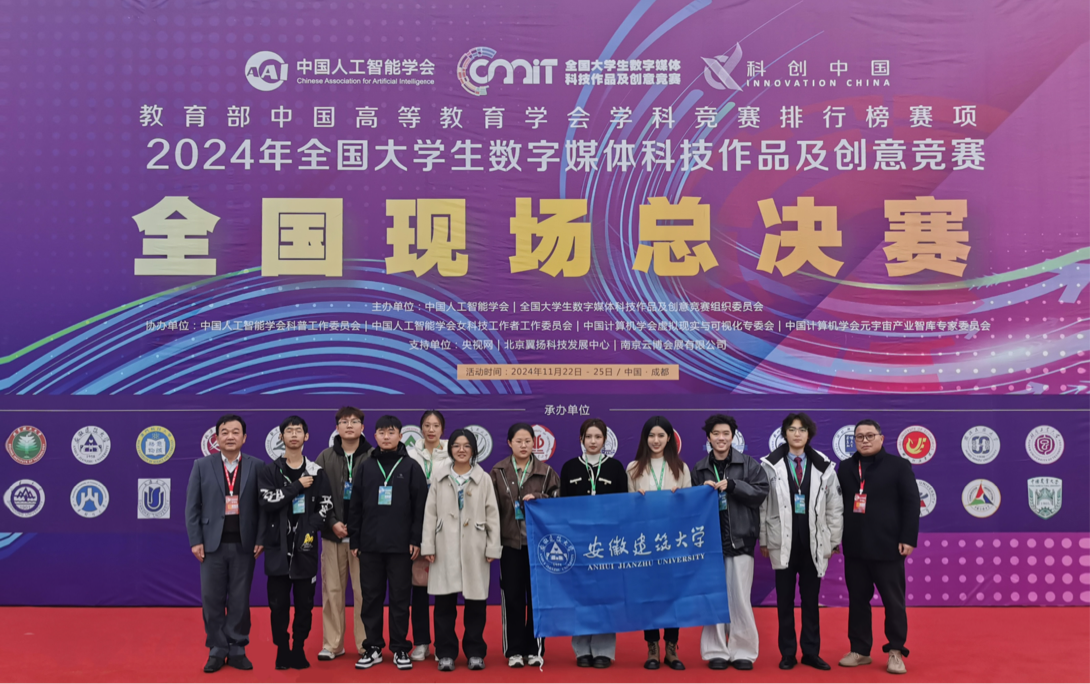 本网讯 近日,2024年第十二届全国大学生数字媒体科技作品及创意竞赛全国总决赛在成都科幻馆举办,本次比赛全国共约14万件作品参赛,获奖比例仅为1%,竞争异常激烈。beat365官网艺术学院、建规学院、电信学院共8支代表队进入国赛,通过现场作品汇报讲解、陈述答辩等环节,斩获全国总决赛一等奖4项、二等奖4项。