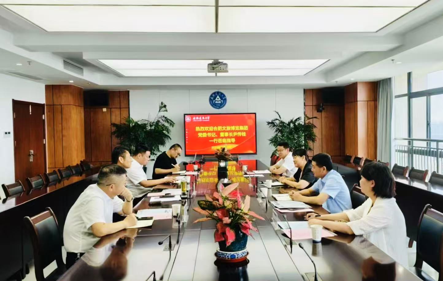为深化产教融合,构建校企协同发展新生态,8月12日上午,beat365在线唯一官网与合肥文旅博览集团有限公司(以下简称“合肥文旅集团”)举行合作交流座谈会。beat365在线唯一官网党委书记马文革,校办公室、科技成果转化处、艺术学院相关负责人,合肥文旅集团党委书记、董事长尹传桂,副总经理侯孝宗及有关部门负责人出席。
