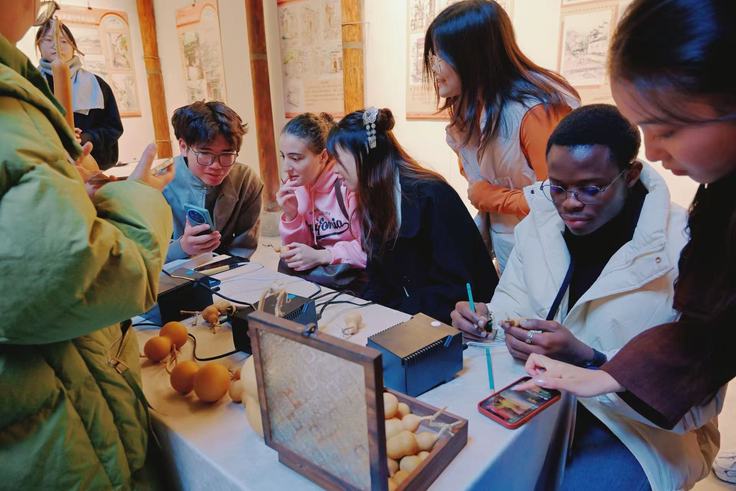 在非遗实践体验区,葫芦烙画、竹编技艺、鱼灯制作等传统手工艺项目吸引了众多学生参与。中外学生结对协作,体验制作流程,感受匠人精神中“格物致知”的智慧。一件件亲手完成的作品,不仅是技艺传承的见证,也成为跨越文化的友谊象征,让参与者在实践中体会到中华优秀传统文化“和而不同”的包容性与生命力,以实际行动践行了“推动优秀传统文化创造性转化、创新性发展”的理念。