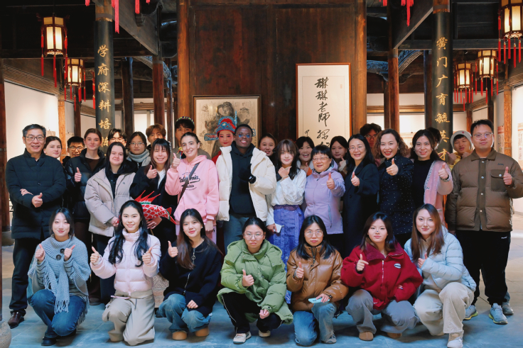 活动在设计创意学院刘琳琳、钟新老师的精彩演讲中拉开序幕。两位老师阐述了中国传统工艺的美学源流与非遗文化的丰富内涵,并重点介绍了黄梅戏等安徽地方戏曲的艺术特色。活动现场,设计创意学院的大一新生身着黄梅戏经典剧目《女驸马》的华美戏服惊艳亮相,通过展示扮相并分享对剧目的理解,将“为救李郎离家园”的千古佳话娓娓道来,展现出徽风皖韵的独特魅力,引来中外学生的阵阵掌声。