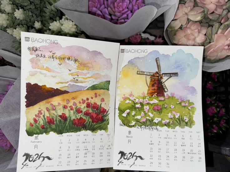 同学们提交的作品形式多样、构思巧妙,“以规划之美,赋有序生活”为理念,将艺术创意与日常规划相结合,设计出既实用又美观的计划表,在潜移默化中培养有序、自律的生活方式。《系絮语-光阴手绘日历》以草木生长、四时光影为灵感线索,运用柔和的水彩风格,将日程规划与视觉美感相结合,既兼具日期记录的实用性,也能为日常增添一份治愈心绪的小美好。其他作品也呈现出多元的思考,有的注重目标管理与任务解的实用设计,有的融入插画、色彩与装饰元素的美学表达,在提升执行动力的同时,让时间管理成为愉悦的生活体验。