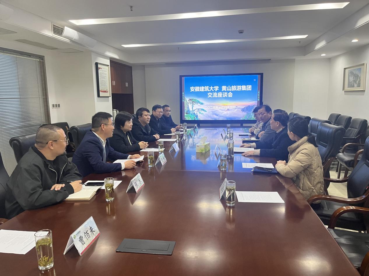 座谈中,黟县徽黄旅游集团副总经理金序春、徽建控股集团有限公司董事长王德修分别介绍了企业发展情况及合作诉求,希望与学校在业态创意、古建保护、教学点设立等方面深化合作。