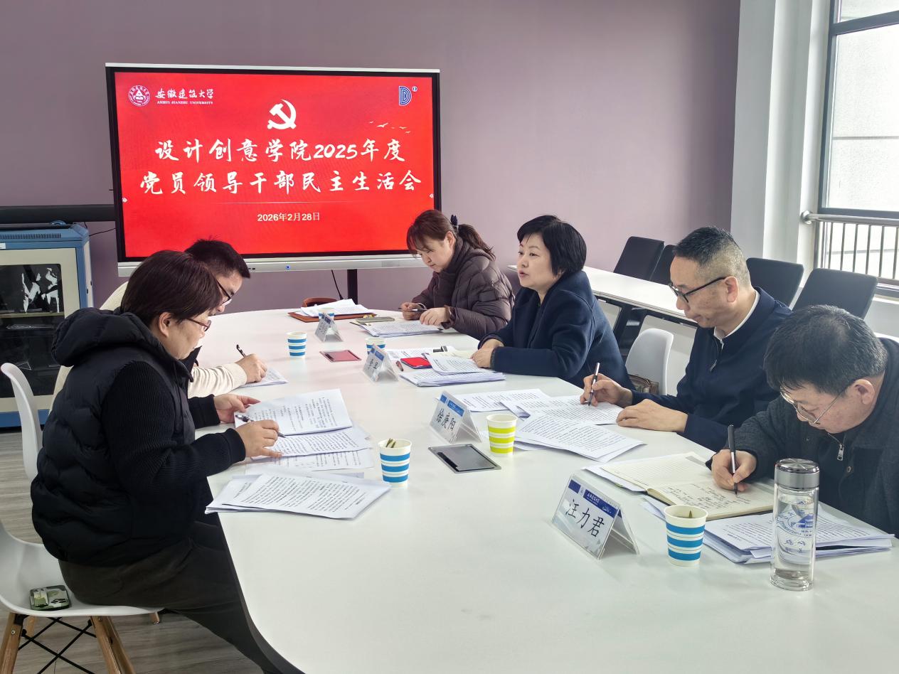 本网讯 2月28日下午,设计创意学院党委在紫云路校区徽韵楼6702会议室召开2025年度党员领导干部民主生活会。校党委副书记李早率校第三督导组成员徐庚阳、联络员王佳佳到会指导,校纪委委员汪力君列席会议。会议由学院党委书记潘青主持,学院党委领导班子成员参加会议,副院长(主持工作)张乐、副院长黄成列席。