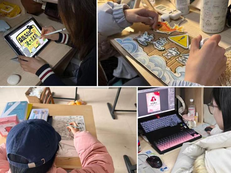 创意赋能,以艺传情。同学们发挥设计专业优势,将雷锋精神融入创作实践:用镜头定格身边好人好事,以影像传递温暖;精心打造雷锋主题IP与表情包,年轻化表达让奉献精神更加鲜活生动;绘制专题海报、为寻物启事等公益信息设计宣传版面,以专业之力服务同学;还为校园微角落创作解说牌,普及植物知识与环保理念。一件件有温度、有创意的作品,既是专业能力的生动展现,更是新时代青年对雷锋精神的青春诠释。