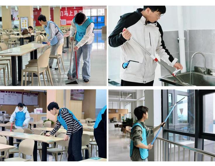 躬身实践,以劳筑美。学院团委联合后勤基建处,携手走进新南园餐厅,共同开展环境卫生清洁行动。志愿者们与工作人员并肩合作,有的仔细清洁餐桌,有的耐心整理厨具,共同维护师生的用餐空间用实际行动传递劳动之美与校园温情。雷锋同志说过,人的生命是有限的,而为人民服务是无限的。参与活动的同学表示劳动虽然辛苦,但看到整洁明亮的食堂环境,心里特别满足。作为新时代青年,我们更应在日常小事中践行奉献精神,用勤劳的双手美化校园、服务同学。