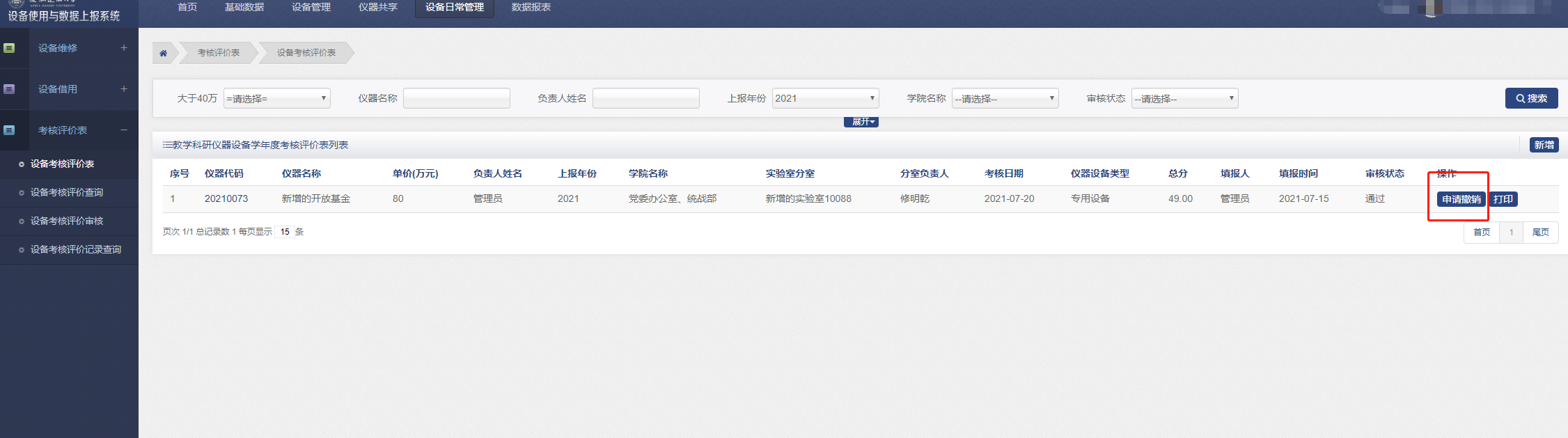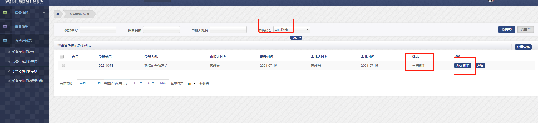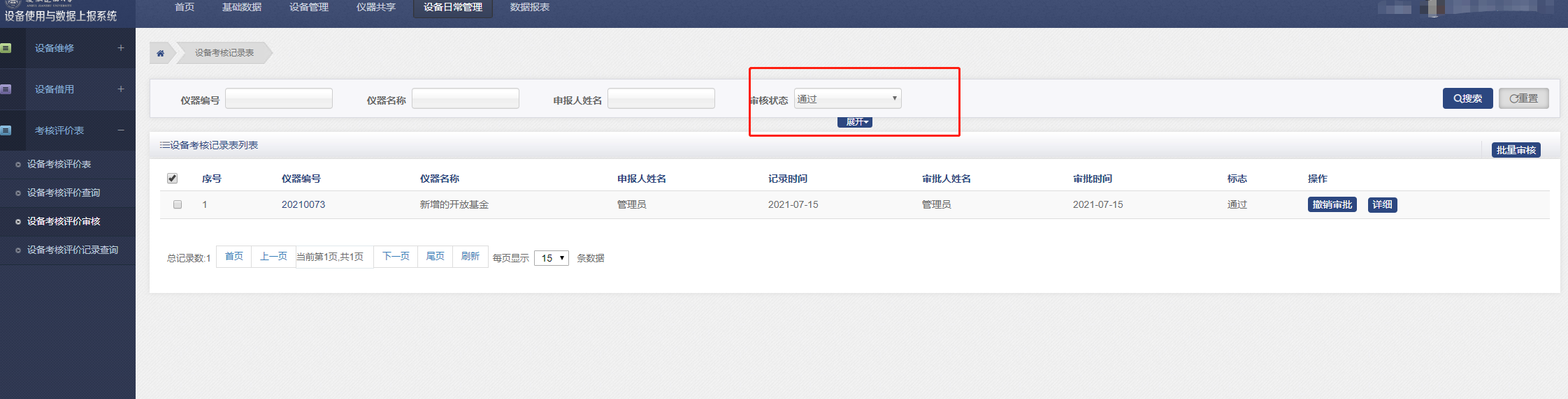 所有提交的设备考核评价表在此审核。