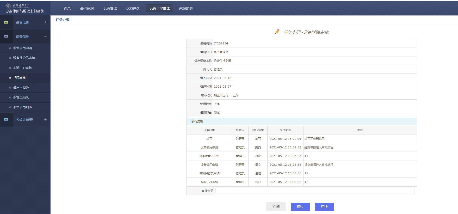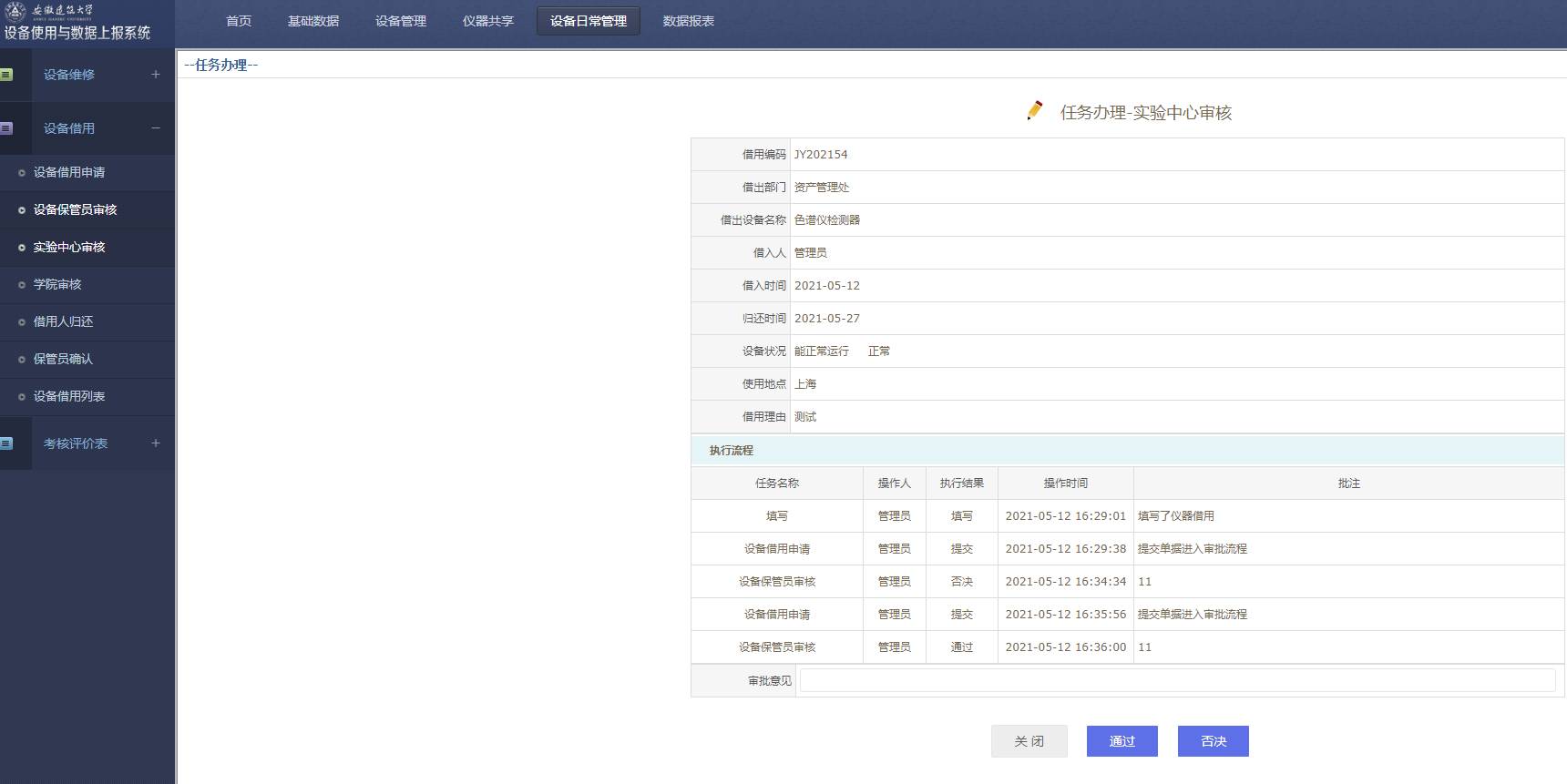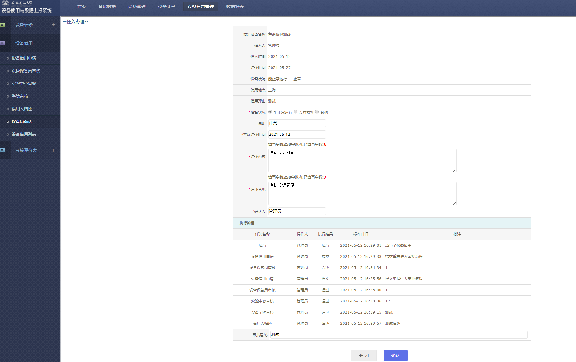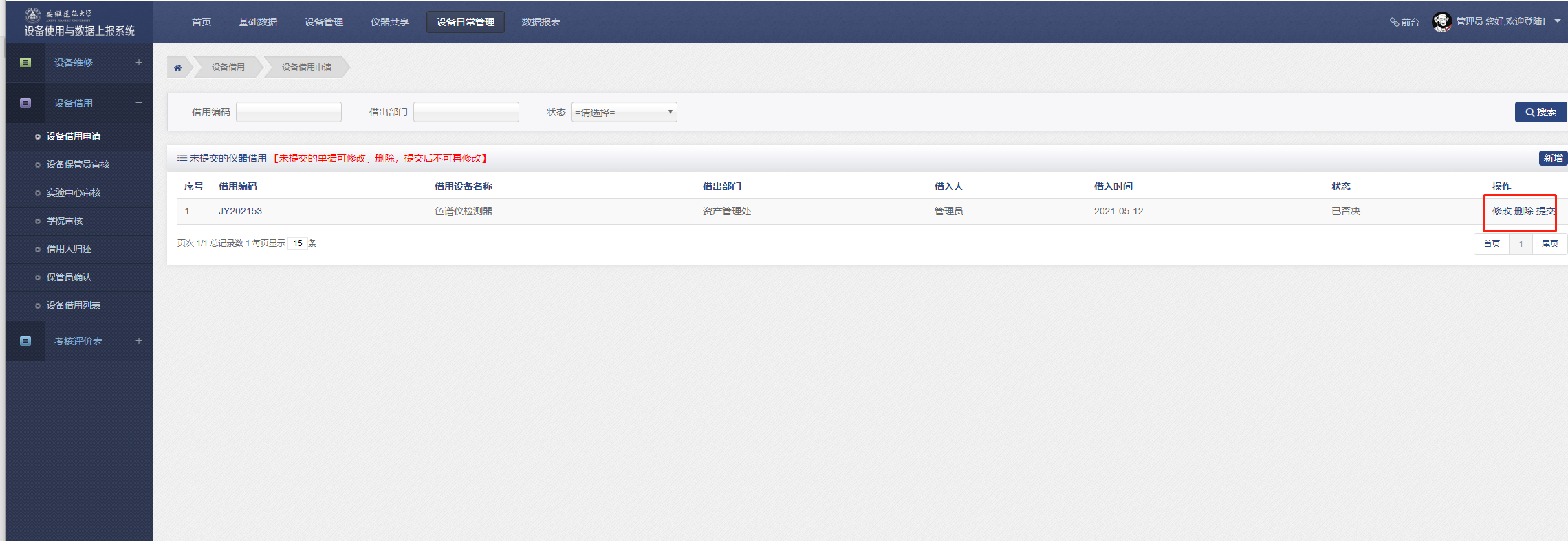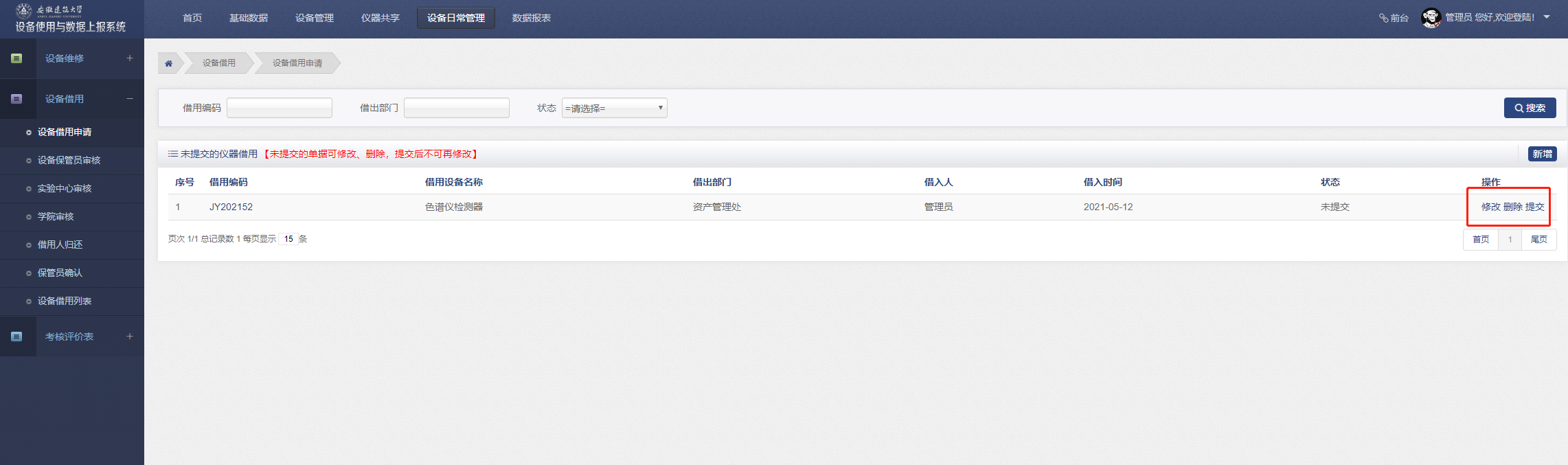 (提交借用的设备必须有保管员,若无,则无法进行设备保管员审核)