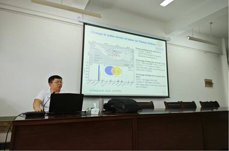 报告中,段峥博士介绍湖泊水量和水质研究的重要性;然后阐述近些年关于使用多源卫星遥感技术对于水量和湖泊水质等方面所取得的研究成果;随后他介绍2023年7月刚刚完成的国家自然科学基金中瑞合作项目-青藏高原冰川湖泊科学考察获取的第一手实测资料以及其他相关合作研究项目情况。