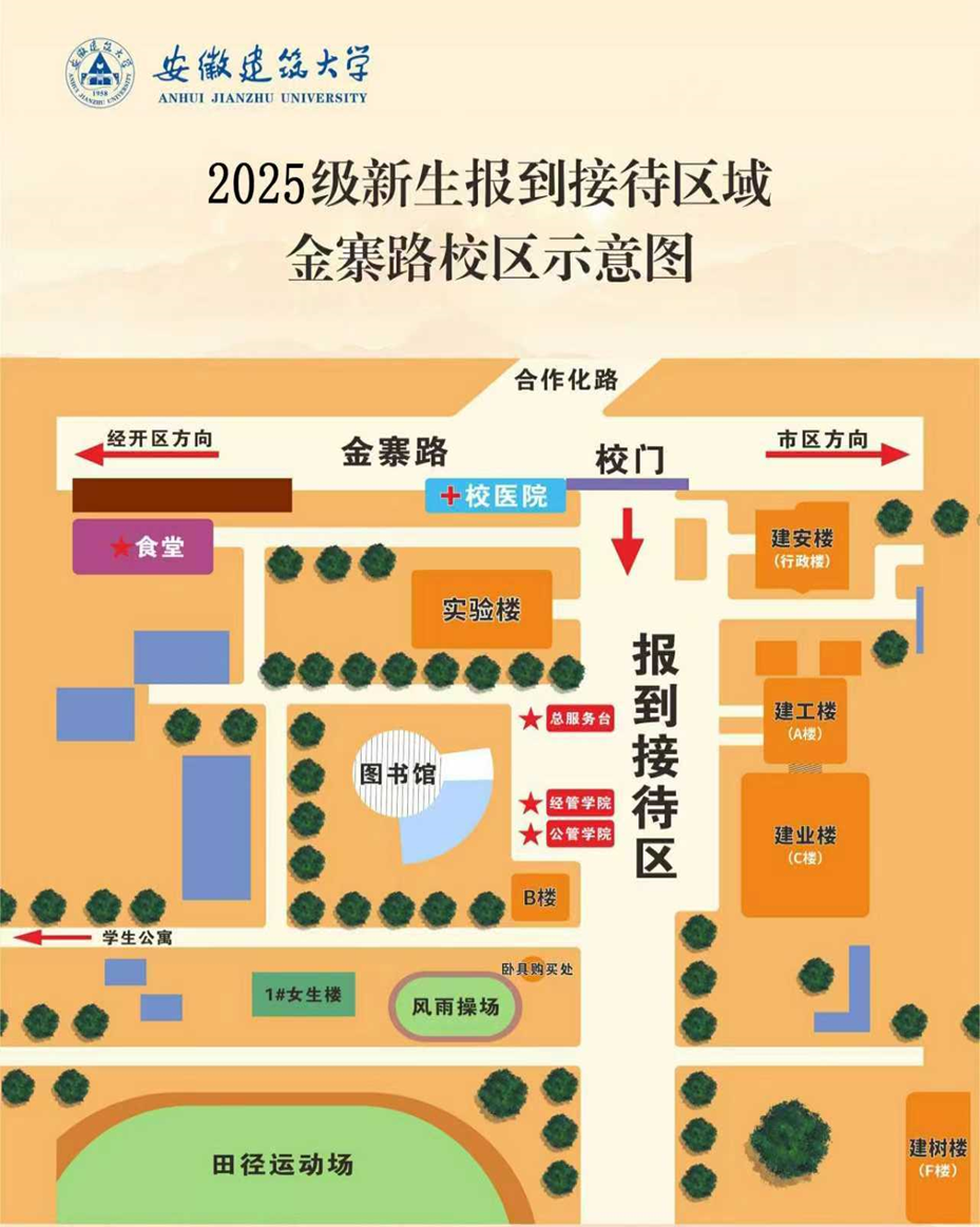 温馨提示:报到当天,金寨路校区西大门、东门均可扫脸入校,合肥高铁站、合肥高铁南站内可直接换乘地铁到4号线“南屏路”站,出站北行约8分钟可到东门;紫云路校区南大门、小南门(南1门)、小北门均可扫脸入校。紫云路校区小南门(南1门)、小北门(北1门)开放时段:06:00-23:30,金寨路校区东门开放时段:06:00-22:30。