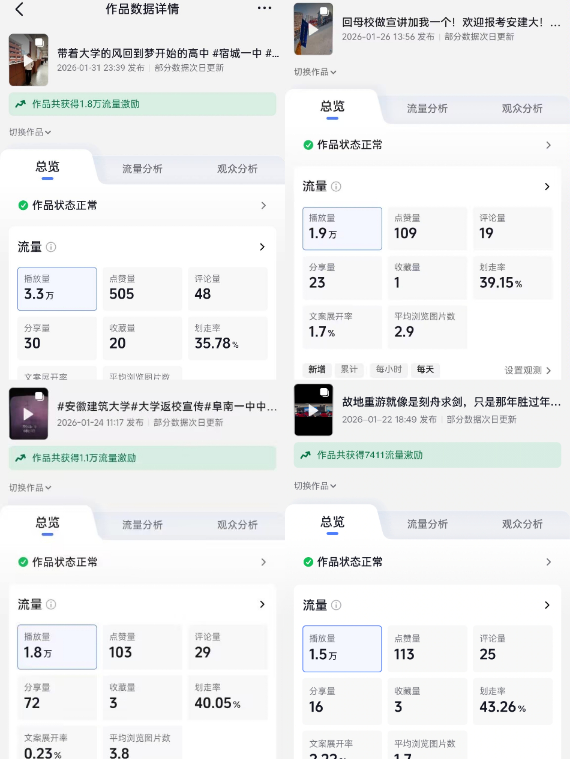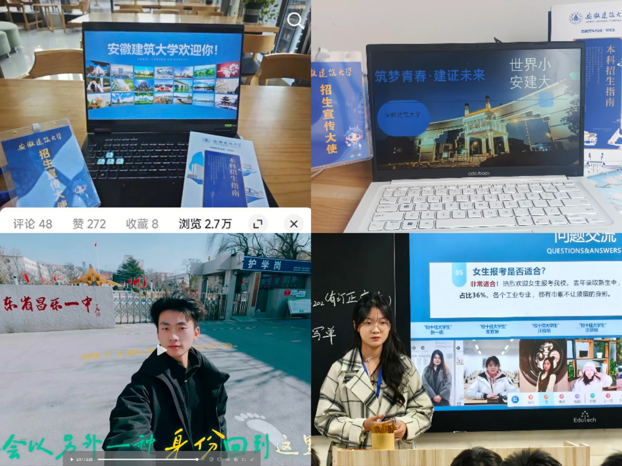 志愿者们结合实践感悟,充分发挥美育素养,将宣讲行程制作成创意新颖、画面精美的图集与视频,在个人社交平台及国内主流社交媒体积极传播,与考生、家长及社会各界开展常态化互动,构建起多维度、矩阵化的传播格局。其中多个视频点击量突破万人次,观众反响热烈,有效提升了学校的社会美誉度与生源吸引力。