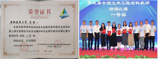 认真学习贯彻习近平总书记关于高校教师队伍建设的重要论述,近年来,工作室坚持引育并举,从同济大学、东南大学和武汉理工大学等国内外知名院校全职引进优秀博士3名、博士后2名,聘请武汉理工大学丁庆军教授、同济大学张祖华教授作为校外导师;支部党员教师王爱国、刘开伟等5位同志分别赴澳大利亚、美国等高校进行学习交流,开拓国际视野,拓展对外交流。发挥传帮带作用,通过结对帮扶、教学培训、教学竞赛等方式,积极帮助青年教师成长进步,着力提升青年教师教育教学水平和科学研究能力,着力构建一支师德高尚、业务精湛、结构合理、充满活力的教师队伍。支部党员刘开伟获安徽省高校杰出青年项目资助,马瑞、杨军获安徽省高校优秀青年项目资助;王爱国获安徽省青年拔尖人才称号、张高展获安徽省杰出青年称号,丁益、张高展获批安徽省领军人才特聘教授,马瑞、任启芳在学校2022年课程思政讲课比赛中分别荣获一等奖、二等奖;杨军在第五届全国土木工程材料讲课比赛一等奖,并获得学校2023年“优秀教师”称号;拥有以党支部教师为主体的安徽省115产业创新团队1个、安徽省优秀科研创新团队--先进建筑材料创新团队1个;工作室负责人吴修胜参与的“建筑功能材料”教学团队获批省级教学团队、“厚德强基为先,实践创新并举”无机非金属材料工程专业育人模式获安徽省教学成果二等奖。