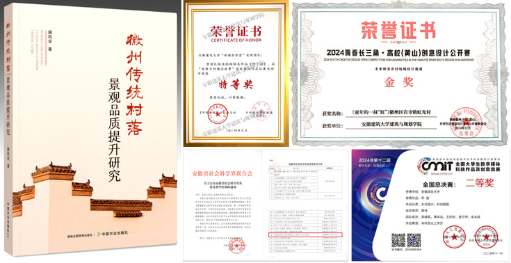 景观系教师党支部深入学习贯彻习近平文化思想,以传承创新徽州传统园林文化为使命,持续培育“徽匠精神薪火传,赓续文脉育新人”特色品牌。党支部与金寨县丁埠村党支部联建共建“新徽匠学堂”,构建了“传统工匠+建筑学子+中小学生+境外青年”四位一体的文化传承新模式,实现徽派建筑技艺的代际传承与文化传播。冀凤全编著的《徽州传统村落景观品质提升研究》,系统阐释徽州传统村落景观意象,从空间布局和节点要素层面深入探究,揭示徽州传统村落景观的形成机制,并提出了针对性的品质提升策略。师生共创成果获农业农村部“美丽乡村建设故事”作品征集活动唯一特等奖以及“青春长三角”高校创意设计公开赛金奖等重要奖项。