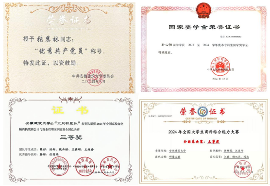 2024年,支部党员张慧林获评2024年度校优秀共产党员;支部书记金三人获评校优秀教育工作者、三全育人先进个人,获批2024年校党建与思想政治工作重点课题1项;支部1名党员获得国家奖学金,1名党员获得校年度标兵,3名党员获得国家励志奖学金,11名党员获得校奖学金,13名党员获得校三好学生、优秀学生干部等各类表彰,20余人次在省级以上学科竞赛中获奖;支部通过座谈会、QQ群、微信群等线上和线下沟通平台,及时了解、听取、回应大学生意见诉求,进一步提升服务师生质效。近三年,支部47名毕业生党员中,共有29名考取研究生,录取率达61.7%,学生党员就业率100%。