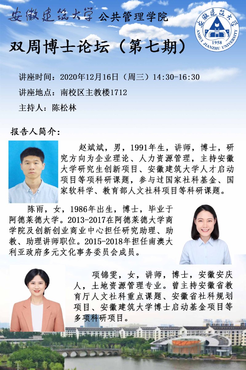 公管学院开展“博士论坛”旨在提升学院科研氛围,调动青年博士科研积极性,加强学科间的交流以及学术联系。公管博士论坛第八讲将于12月23日举办,汇报嘉宾是连瑞瑞、陈坤、姚晔博士。(图/文:屈普 谭佩佩;指导老师:蔡弘;审稿:丁仁船)