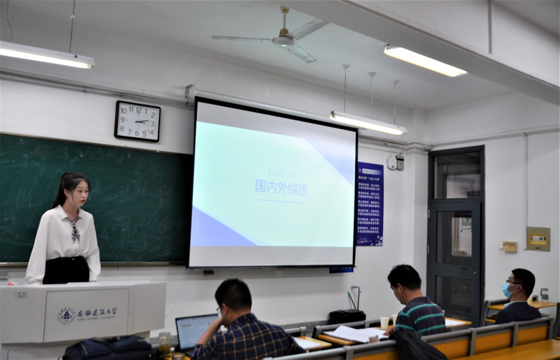 同学们分别从研究背景、国内外研究现状、研究目的及意义、研究内容、研究方法与思路、创新点六个方面进行汇报。答辩老师对开题报告的专业性、科学性、创新性、可行性等方面抛出自己的问题,并提出了有针对性的修改意见。同学们认真记录问题,临场回答。