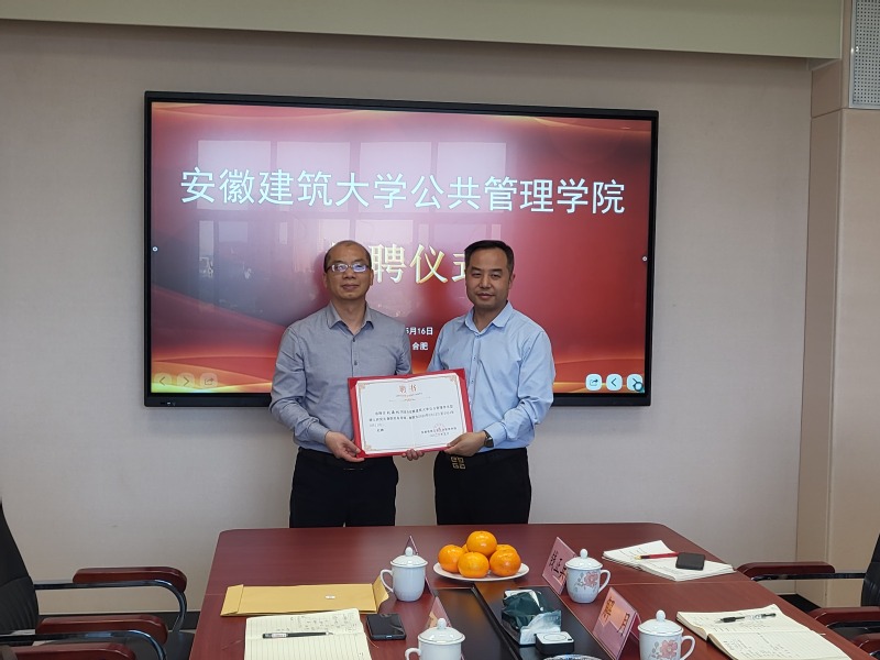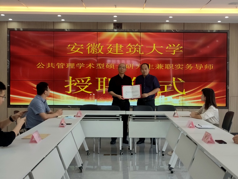 黄佳豪对安徽尚原规划咨询有限公司总经理郭岭、合肥润田规划设计有限公司董事长刘海林和安徽乐庭健康科技产业集团董事长王茂光受聘为学院研究生兼职实务导师表示祝贺,并对三家企业长期支持学院发展表示感谢,希望未来进一步深化校企战略合作,拓宽合作渠道,实现研究生教育理论与实践相结合,共同为社会培养高层次公共管理人才。