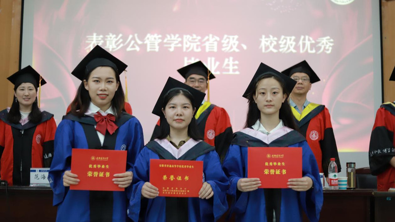 毕业典礼暨硕士学位授予仪式在庄严雄壮的国歌声中拉开序幕。学院党委书记李道先宣读了关于表彰省、校两级优秀毕业生的决定,并希望受到表彰的同学继续发扬优良的校风学风,练真本领,做实干家,在新时代新征程中书写灿烂的人生华章。与会领导为受表彰学生颁发了获奖证书。学院领导和硕士生导师为毕业生正冠拨苏、授予学位,并合影留恋。