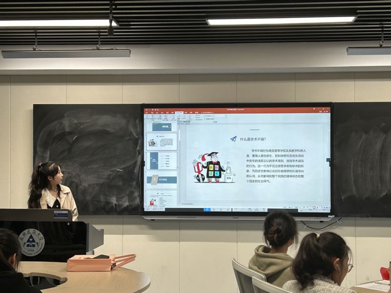 本网讯 为加强研究生学术道德与学术诚信,营造追求真理、实事求是的学术氛围,10月20日,公管学院研究生党支部与研会学术部举办研究生学术道德与学风建设主题教育活动。活动邀请了公管学院22级研究生张丹洋、王晓红和苗升翼进行学术分享,2023级全体研究生参加了此次活动。