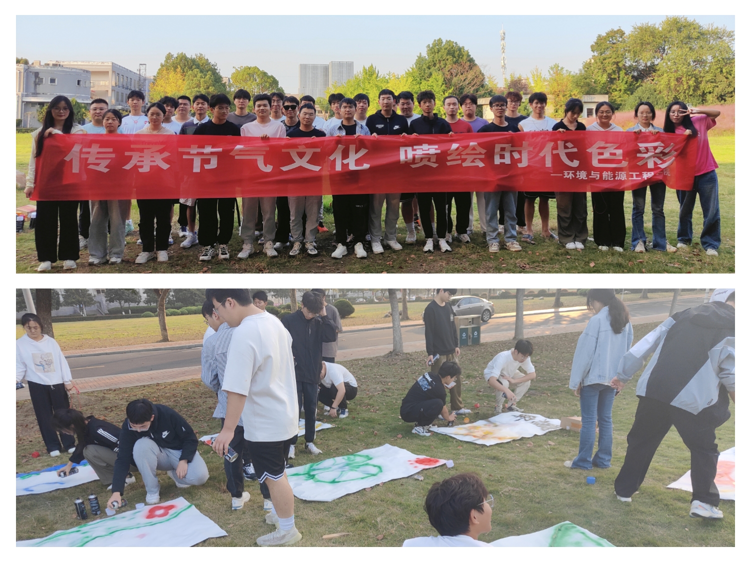 本网讯 二十四节气蕴含着悠久的传统文化内涵和历史积淀,是我国古代劳动人民智慧的结晶,更是我国优秀的传统文化。为了让同学们充分了解二十四节气,传承中华优秀传统文化,铸牢中华民族共同体意识,10月29日,环能学院在主教楼前草地举办“传承节气文化,喷绘时代色彩”主题活动。