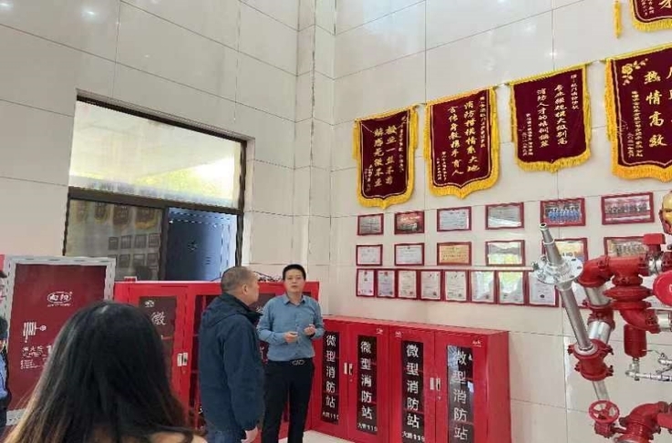 红门消防职业培训学校吴迪校长热情接待谢发之一行,他详细介绍了红门消防学校的基本概况、消防实验室平台、消防实验设备以及消防实操平台等。谢发之院长感谢吴校长的热情接待,介绍了beat365官网消防工程专业建设的基本情况,并就消防工程专业实验实训平台建设和合作机制与吴迪校长进行深入探讨。