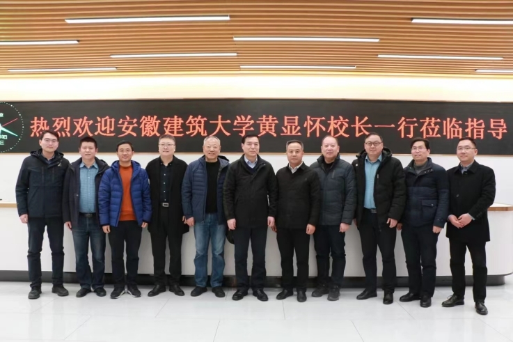 本网讯 1月10日,学校党委副书记、校长黄显怀带领科技处、科技成果转化处、环境与能源工程学院相关负责人赴合肥润田规划设计有限公司开展产学研合作交流,合肥润田规划设计有限公司董事长刘海林及相关部门负责人参加交流。