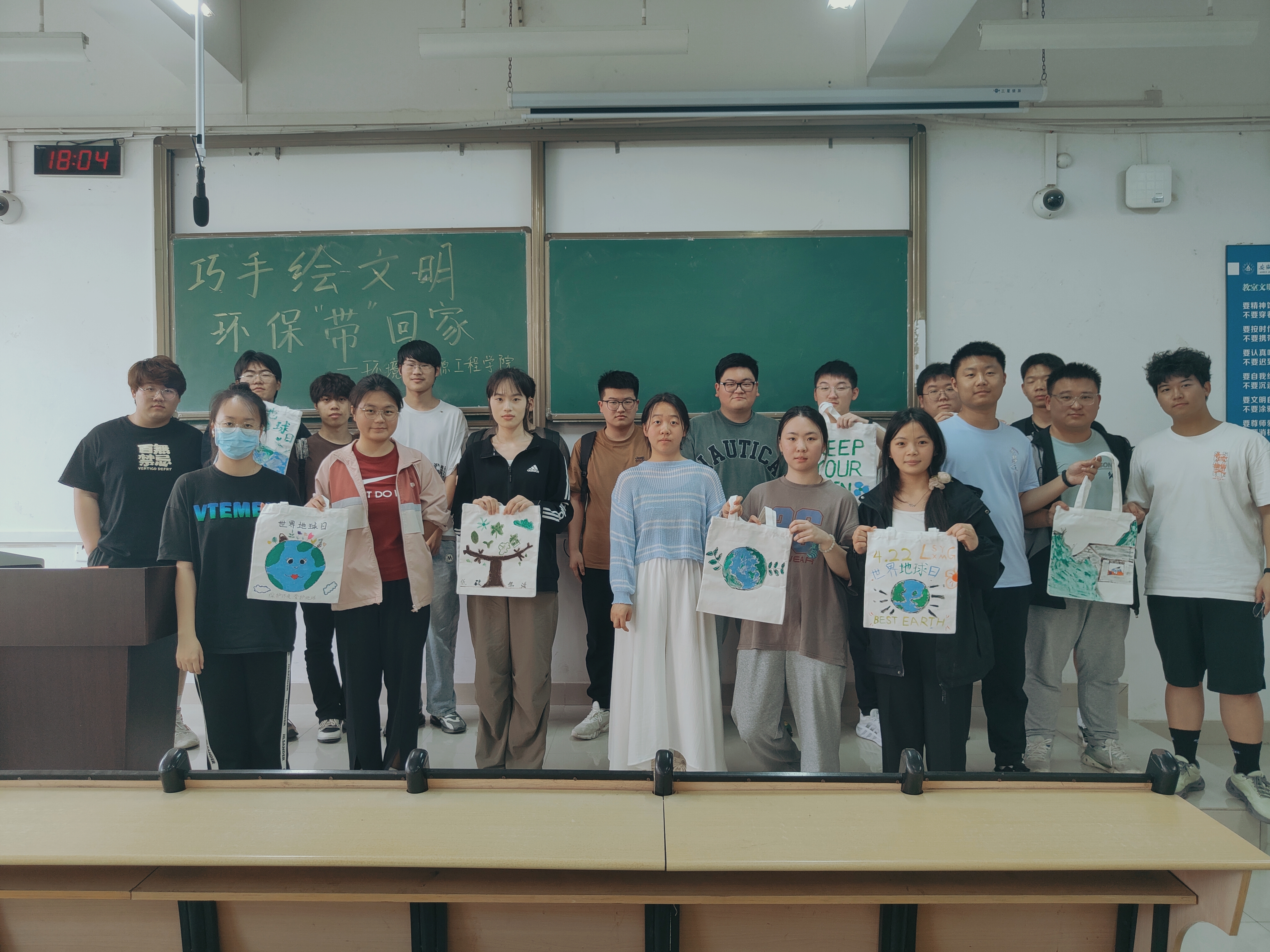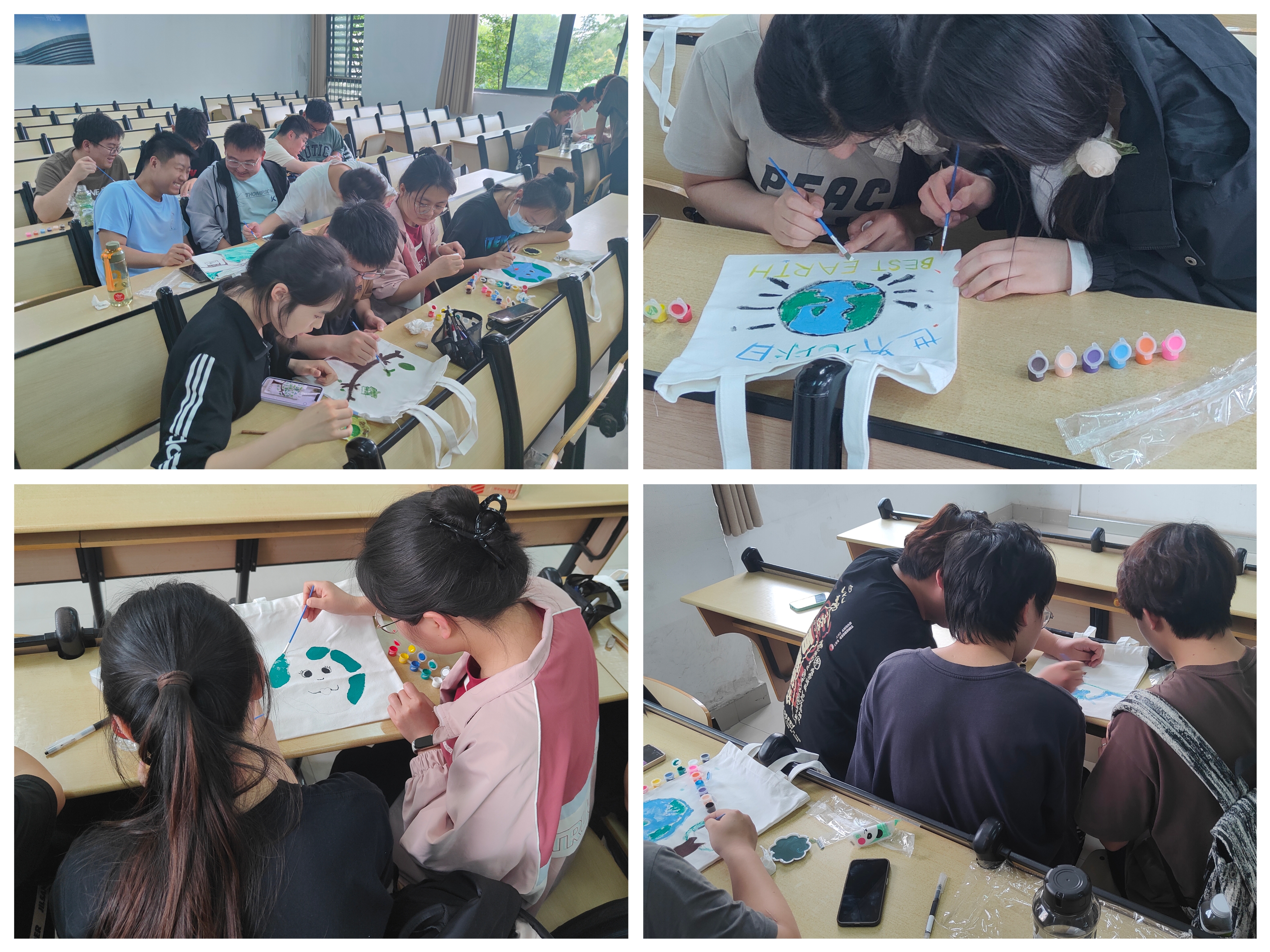 本网讯 2024年4月22日是第五个世界地球日,今年的主题为“全球战塑”。当天下午,环能学院在逸夫楼开展“巧手绘文明,环保‘袋’回家”世界地球日系列活动。