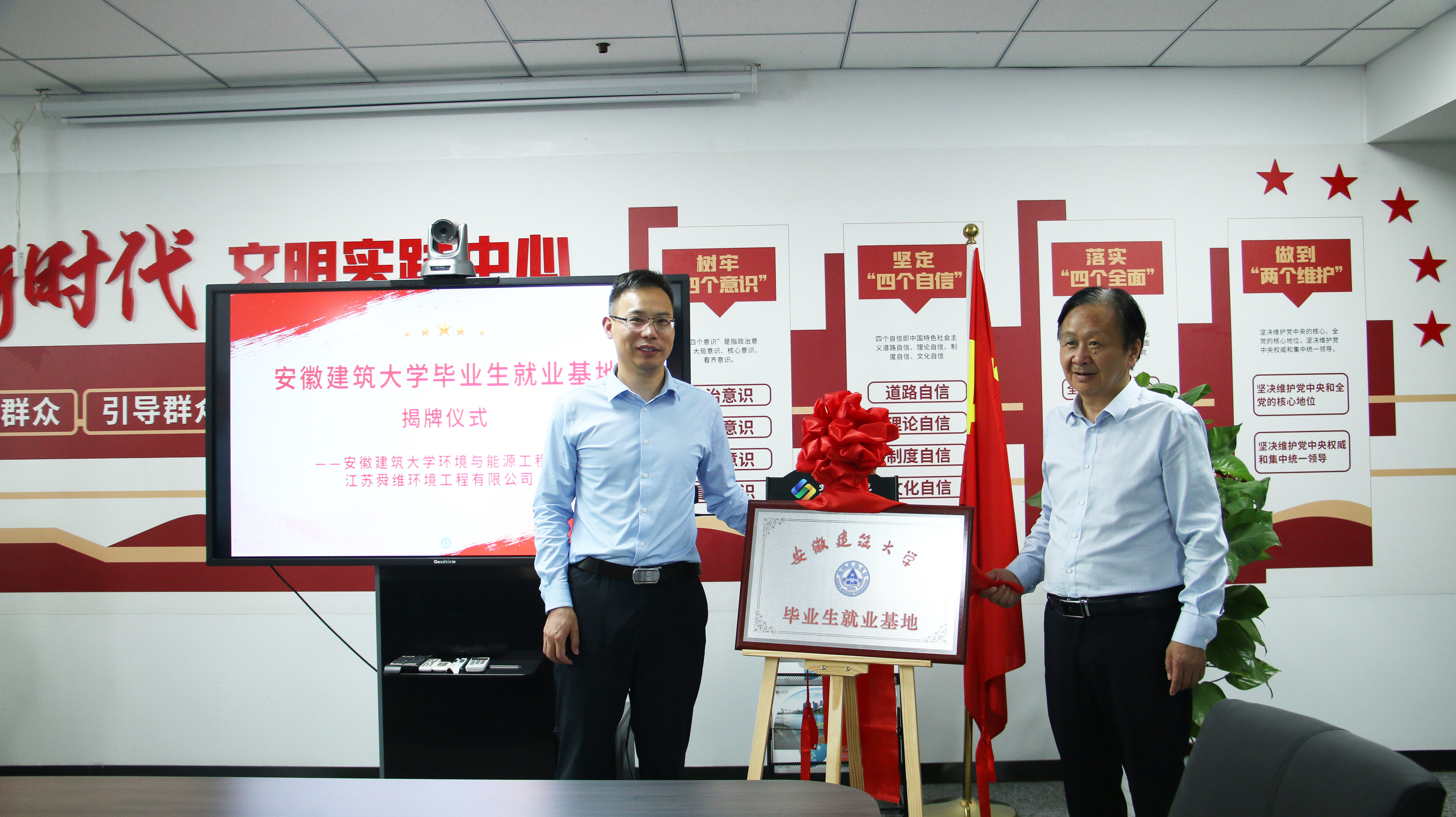 环能学院负责人向企业介绍了学院人才培养和产学研等情况,向用人单位递交了学生求职简历,并做了重点推荐。会后,学校与公司签署了共建就业实习实践基地协议,并共同为就业实习实践基地和产学研实践基地揭牌。(作者:徐明露;审稿:戴前宏)