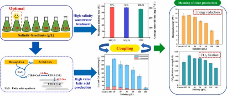 相关成果以“Salinity controlling enhanced high-salinity pickle wastewater treatment coupling with high-value fatty acid production by Dunaliella salina”为题发表在中科院一区Top期刊Journal of Cleaner Production(IF10.2)上。(作者:胡昊 吴邦磊;审稿:谢发之)