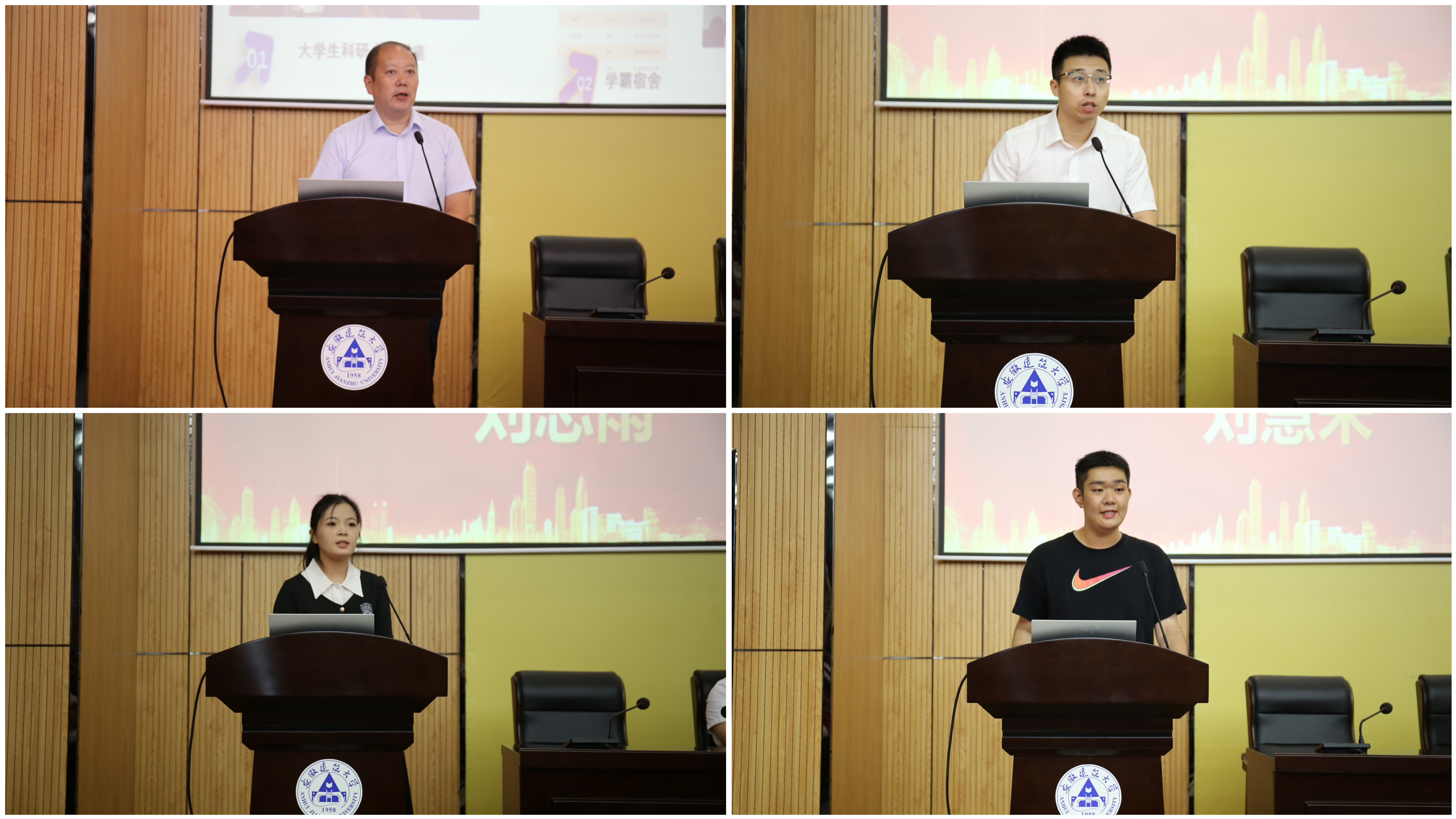 老生代表2022级消防专业刘思雨同学鼓励学弟学妹们勇于探索、不畏挫折,为新生们提出了三点建议:要树立明确的目标、养成良好的学习习惯、积极参加文体活动,期待在未来的日子里,能和他们一起够勇敢地追逐自己的梦想,不畏艰难险阻,勇往直前。2024级建筑环境与能源应用工程专业刘慧来代表新生发言,他说:“我和室友在日月广场看夜火阑珊,到南苑门前看银杏金黄,在徽弘门下感受学校厚重历史、雕梁画栋的徽派建筑感受徽学楼梅林的浪漫”,作为建大新生,将脚踏实地勇往直前,在领导、老师的教诲下,展现青春作为、彰显青春风采,以实际行动书写“建大学子”的荣光。