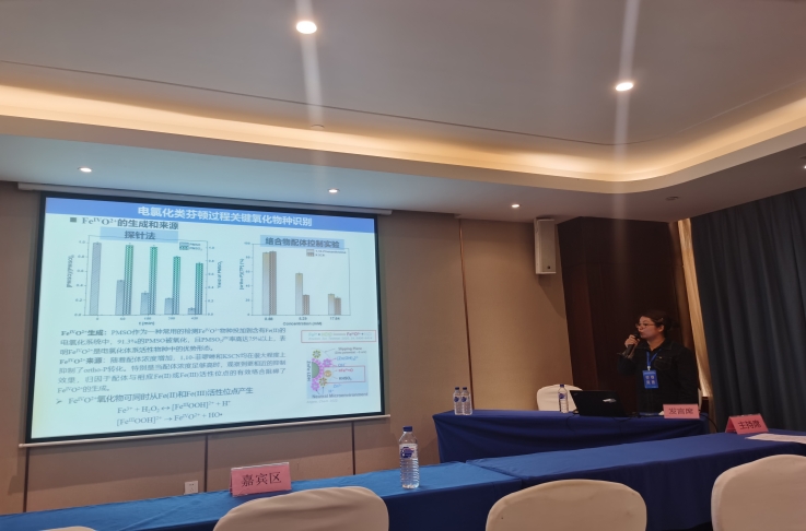会议设置有特邀主旨报告、分会场研讨会、青年学者专场、研究生专场、墙报交流和生态环境创新科技成果转化交流会。会议安排了47个学术议题,分为河流、湖泊、工业水处理、水安全保障和跨界水污染协同治理等5个领域。其中,我院青年教师陈星和博士后孙赛楠分别以《稳定同位素作为示踪剂在煤矿区表生环境中的应用》和《电氯化类芬顿高效去除水中有机膦酸机理研究》为题做了精彩报告,展示了他们在各自研究领域的最新成果,体现了青年学者的创新精神和科研能力。