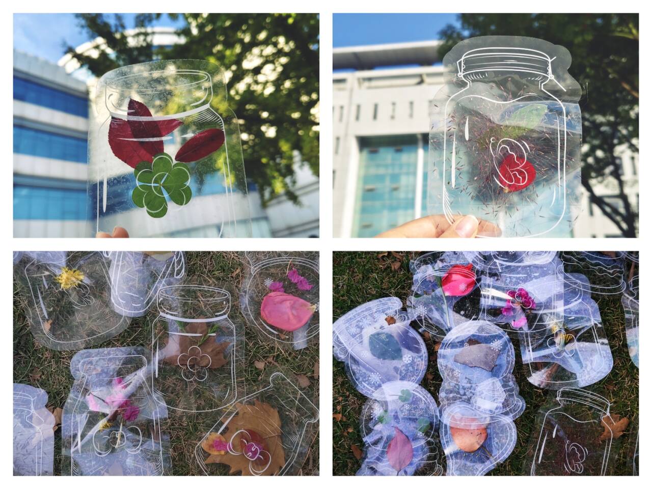 迎着深秋的暖阳,组织者简单传授干花及植物标本制作技巧之后,同学们就开始仔细搜寻校园及周边的每一个角落,捡起秋叶、落花和各种果实。他们将捡到的植物标本精心整理,挑选出最适合做书签的叶片和花朵,让自己的想象力在这场秋日私语里尽情驰骋。大家巧手翻飞,镂花镌叶,描摹着色,帮助零散枯萎的枝叶花草重新焕发出新的生命。
