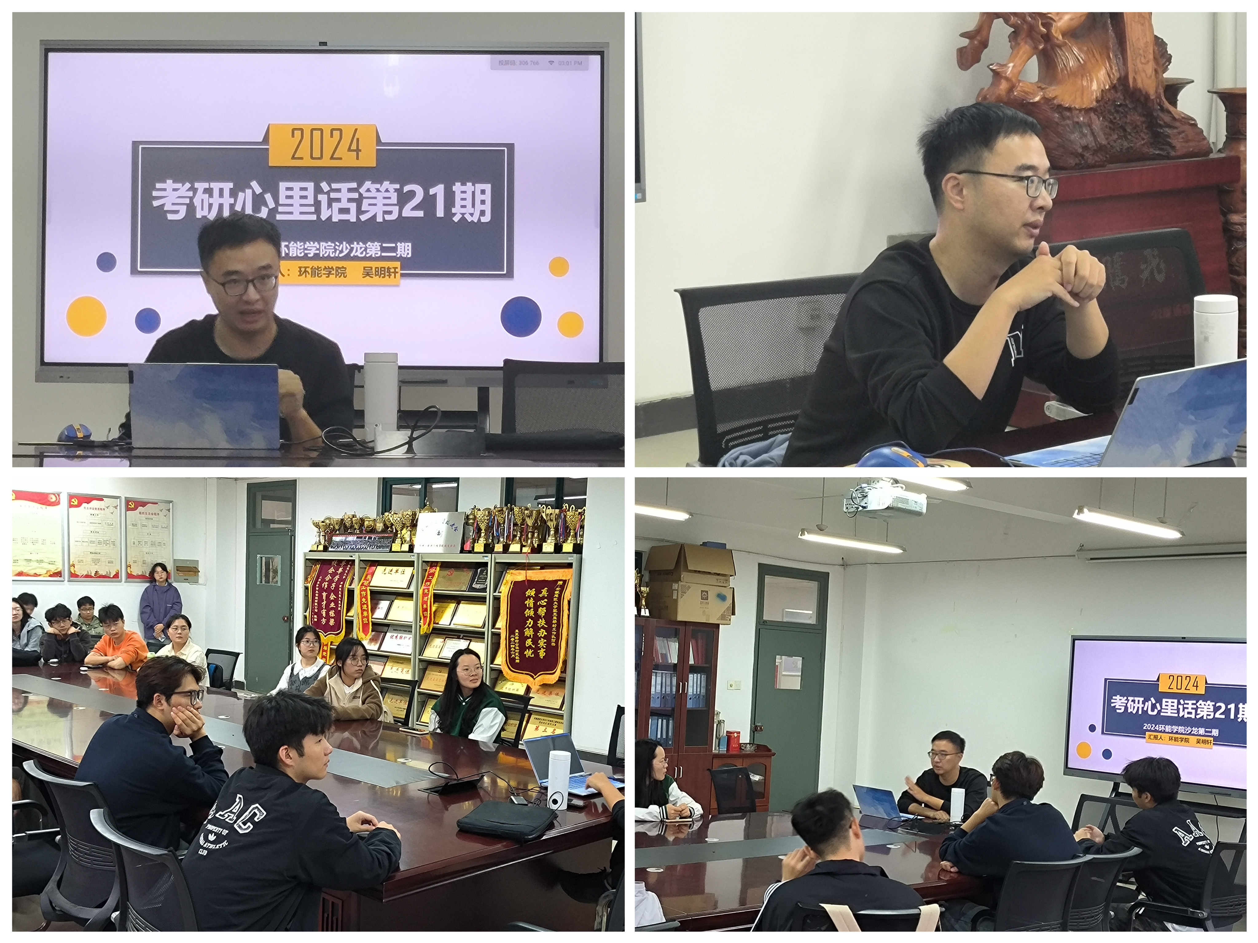 本网讯 为帮助2022级考生了解考研流程、掌握科学备考方法、提高考研成功率,环能学院于11月15日在徽文楼212室举办了“考研心里话”沙龙活动。