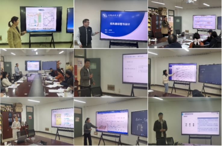 青年教师对此次比赛高度重视,准备充分,比赛按抽签顺序依次进行。张婷老师讲解了《地理信息系统原理》课程,利用导航最优路线为引例,深入浅出的讲解了Dijkstra算法;张泽龙老师将《换热器原理与设计》中的换热原理知识点讲解透彻,整个教学过程思路清晰、环节紧凑;胡超老师讲授《燃料及燃烧学》,由煤引入课程,按照由简到繁的顺序逐步展开知识点;赵厚德老师铿锵有力地对《军事理论》课程进行讲授,多种形式引导学生思考,语气抑扬顿挫;黄灏老师讲授了《Java语言程序设计(地信)》课程,教学设计层次分明,并引入实际的Java操作案例,激发学生兴趣。陈冰宇老师生动形象地讲解了《水污染控制工程》中的教学案例,教学过程引人入胜,课件新颖生动,授课条理清晰;赵冰冰老师风趣且不失优雅地对《建筑设备B》中水压问题进行分析,整堂课一气呵成、清晰流畅;周戎星老师对《消防给排水工程(双语)》课程内的自动喷淋基本理论做了全面的介绍,结构合理,重难点突出,板书调理清晰;张萍老师对《环境生态工程》中的生物质能源的制备、利用等方面进行了细致的讲解,台风优雅,重点突出;张治老师讲解了《绿色建筑》中的部分经典案例,教学设计合理,并与课程思政有机结合。