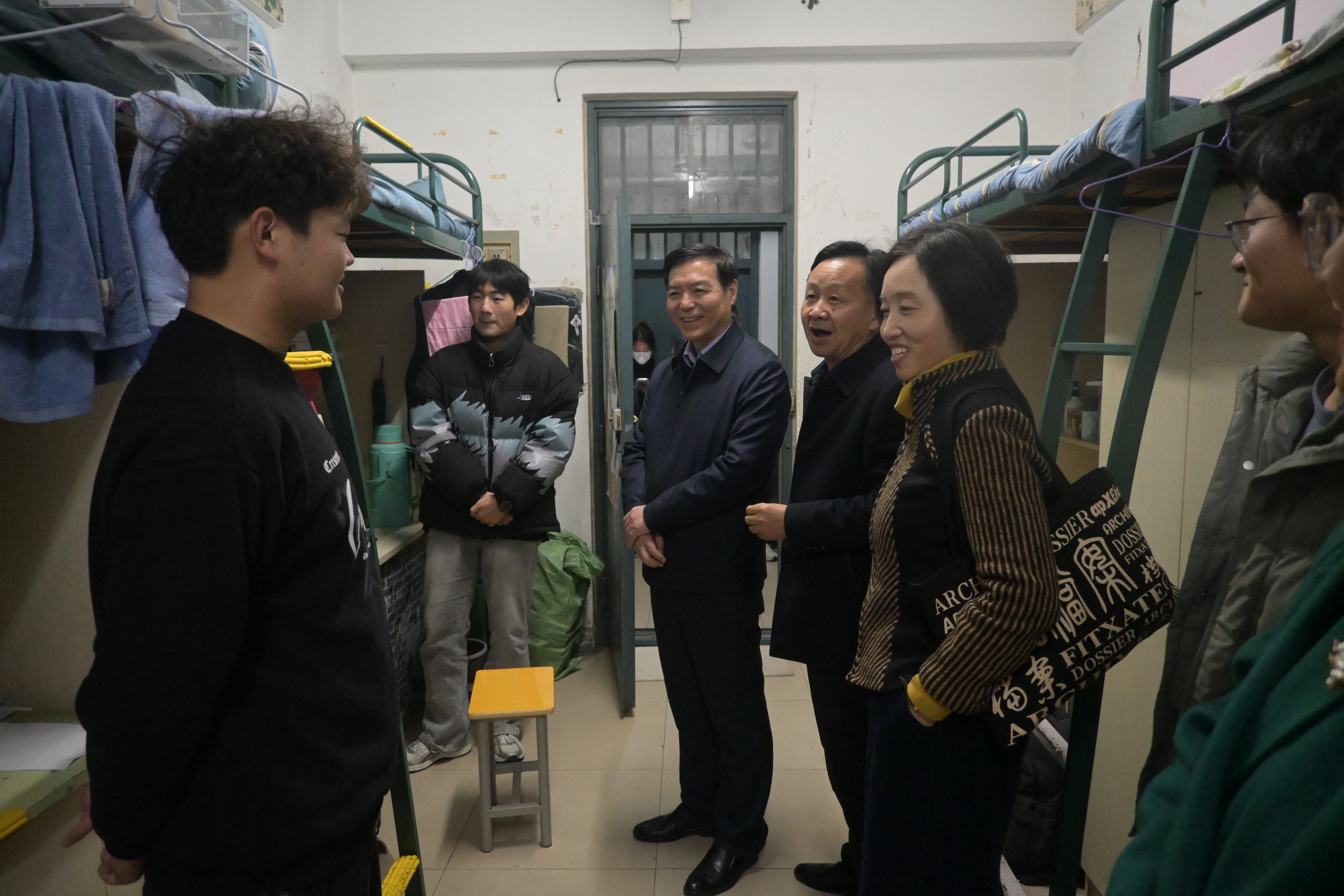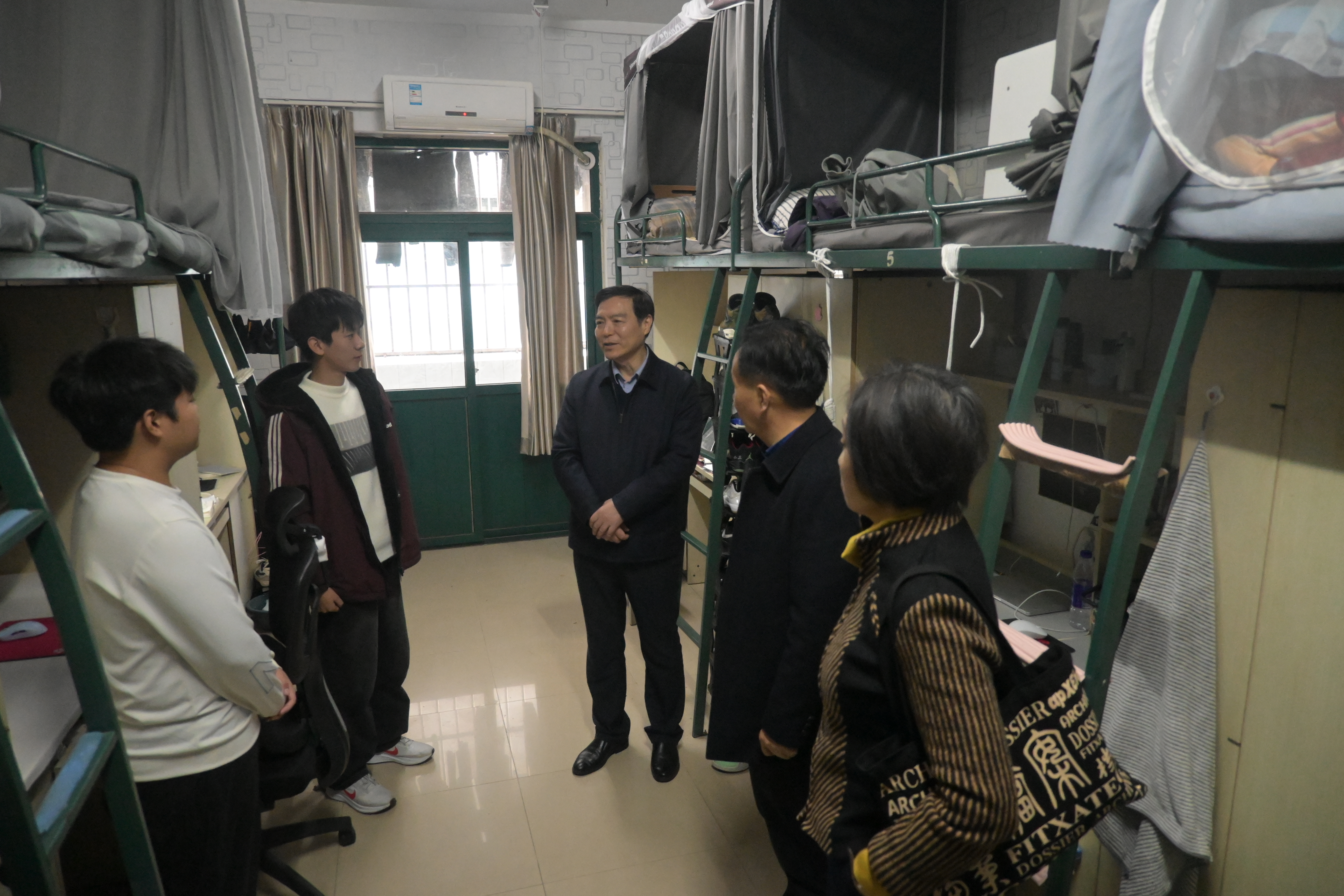 宿舍是学生校园生活的重要场所,黄显怀高度重视学生的宿舍生活环境和生活状态。在随机走访宿舍过程中,他仔细查看宿舍的卫生状况、设施设备是否完好等,与同学们拉起家常,了解他们在宿舍生活中的困难和需求,询问是否存在生活设施维修不及时、相关服务是否到位以及宿舍文化建设等方面的问题。叮嘱同学们要注意宿舍安全,保持良好的生活习惯,共同营造整洁、舒适、温馨的宿舍环境。并且要求相关部门加强宿舍管理和服务工作,及时解决学生反映的问题,为学生的学习和生活提供有力保障。
