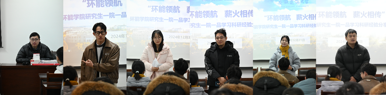 本期交流会邀请了环能学院不同专业的6名优秀研究生作为主讲嘉宾。土木水利专业的陈君豪,凭借自身扎实的知识储备和丰富的实践经验,从考公、考博和就业这三个重要方面,为大家带来了全面且宝贵的经验分享。市政工程专业的邱先进,对专业相关课程内容进行了详尽的介绍。他不仅梳理了课程的重点难点,还结合自己的学习方法,为同学们的期末复习提供了参考建议,助力同学们在学业上取得更好的成绩。资源与环境专业的成潜,结合专业的前沿动态和实际应用,分享了自己在专业学习过程中的心得与体会,拓宽了同学们的视野,让大家对本专业的发展前景和学习方向有了更深入的理解。供热供燃气通风及空调工程专业的叶典礼,以其丰富的专业知识和实践经历,向同学们阐述了专业在实际工程中的应用案例,分析了行业发展趋势,为同学们提供了更多关于专业学习和未来职业规划的思路。环境科学与工程专业的杨欣如,分享了自己参与科研项目的宝贵经历,从项目的选题、研究方法到最终成果的呈现,并鼓励同学们积极参与科研活动,培养自己的创新能力和实践能力。资源与环境专业的孔叶呈,建议同学们制定详细的学习计划,合理分配时间,助力同学们对遥感方向数据处理实践与学业成绩间找到完美平衡,实现全面发展。