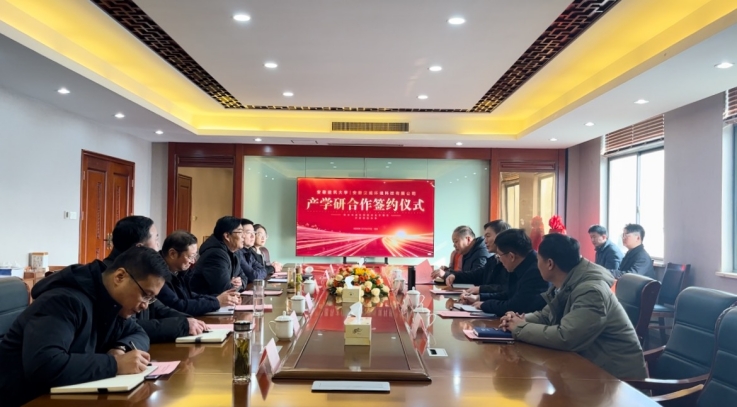 本网讯 为深化校地、校企合作,1月3日,校党委副书记、校长黄显怀应邀率科技处、环能学院主要负责人及环境污染控制与资源化安徽省重点实验室相关人员赴铜陵市开展产学研交流活动,与安徽汉威环境科技有限公司举行产学研合作及研发项目签约揭牌仪式。铜陵市副市长吴强、铜陵市科技局、铜陵市经开区管委会、汉威环境科技公司等相关负责同志参加仪式。