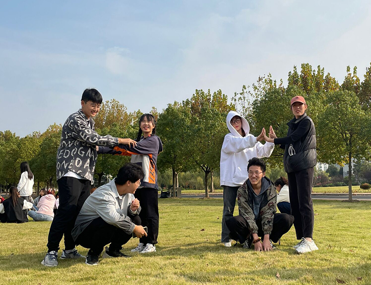 在“大风吹”和“松鼠搬家”破冰游戏环节中,同学们欢声笑语,打成一片,挥洒青春的活力,拉近了与伙伴们之间的距离,活跃了现场的氛围。在“抓乌鸦”活动环节,参与活动的同学们席地而坐,拍手欢歌,将欢乐的氛围推向了高峰,大家肩并着肩,背靠着背,心连着心,携手前行,将那八九点钟的阳光洒满了心田。