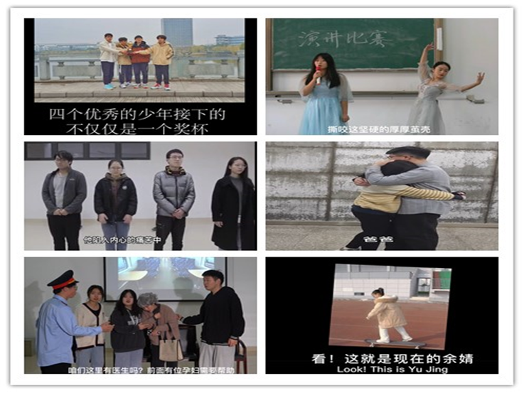 外国语学院《你好 希望》讲述了大一新生宋希在迷茫、绝望找到希望的过程。她性格内向且社恐,想要改变却无果。在老师同学的帮助下,她勇敢踏出了第一步,去参加了演讲比赛,也打开了自己的心房。