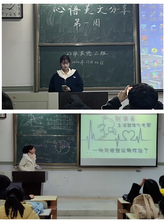 为了加强对学院心理委员的工作指导,学院鼓励各班级心理委员加强学习,每月策划心理活动,提升能力,朋辈互助,在“心”语美文活动中,心理委员介绍了大学生在日常生活中可能遇见的心理危机,如人际冲突危机、学业失败危机、恋爱心理危机等,通过自我反省,引导青年学生正确认识自己,树立健康的心理理念,提高心理保健意识。在《人间值得》读书分享会活动中,心理委员们通过读后感分享,帮助同学们克服自卑感,超越自我,正确对待职业、正确理解社会、正确拥抱生活。
