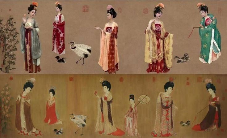 艺术学院学生会心理部22级新生合作模仿了唐代周昉绘制的粗绢本设色画《簪花仕女图》,每段中心人物并非同一人,显示了唐装仕女从戏犬、漫步到赏花、采蝶的连贯性场景变化,气韵古雅,原作柔和恬静的美感得到了生动还原。