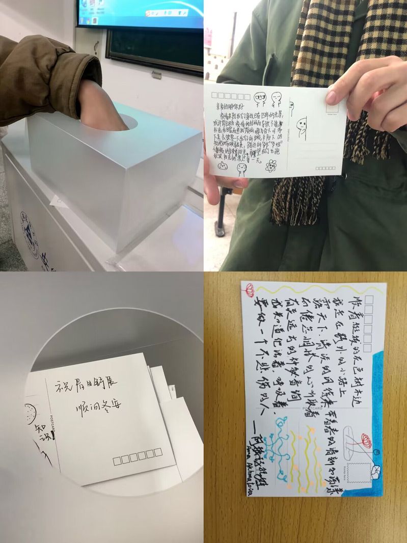 为提高大学生心理调节能力,培养良好心理品质,公管学院开展“你拿我写,温暖校园”明信片盲盒活动。