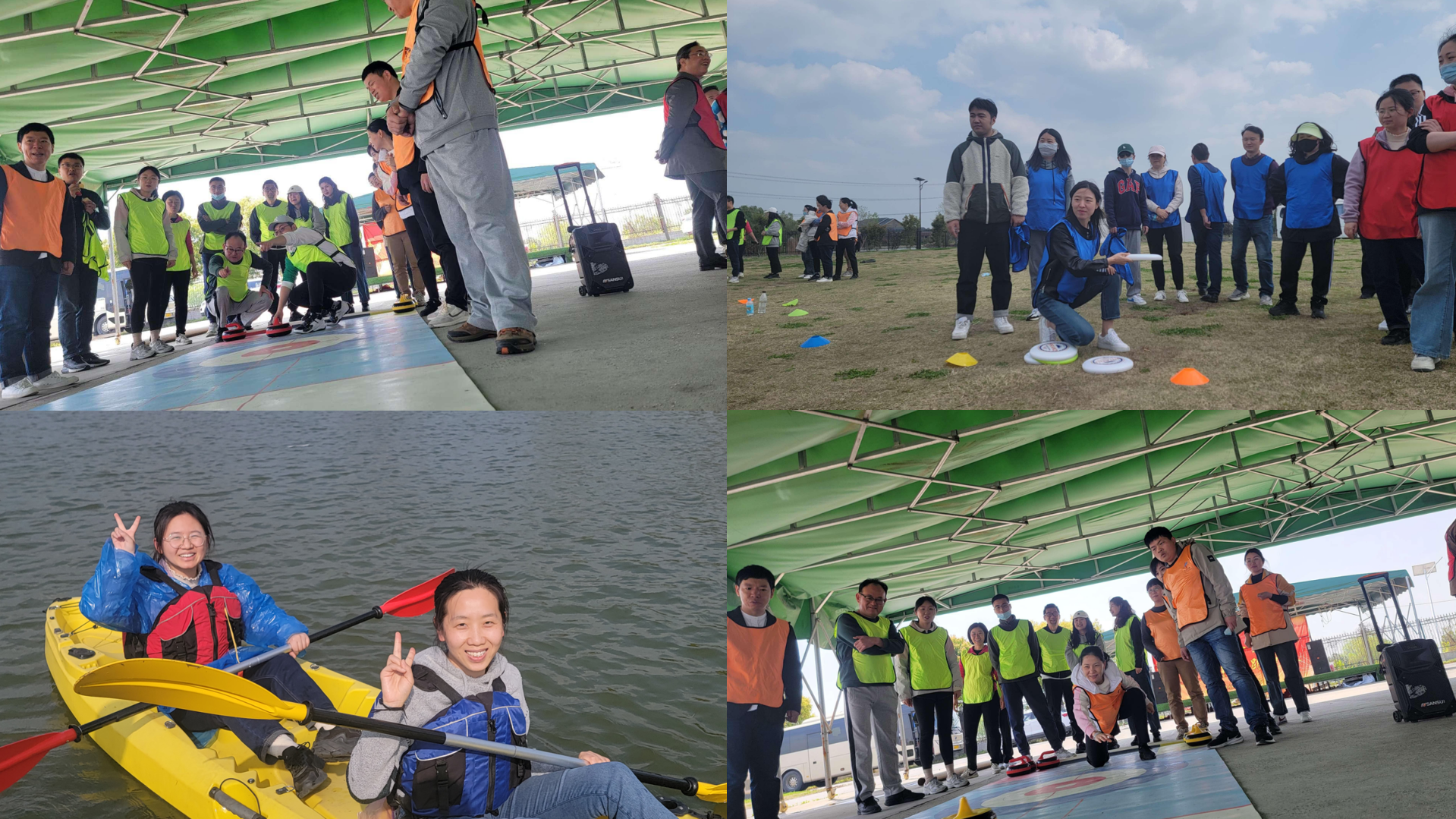 素质拓展活动环节,在教练的带领下,各团队齐心谋划,合理分工、团结协作,先后开展了冰壶比赛、连连看、真人版大富翁、飞盘嘉年华和皮划艇运动等一系列拓展活动。在团结紧张、生动活泼的活动氛围中,大家不仅增强了团队意识,更是展现出饱满的精神状态。