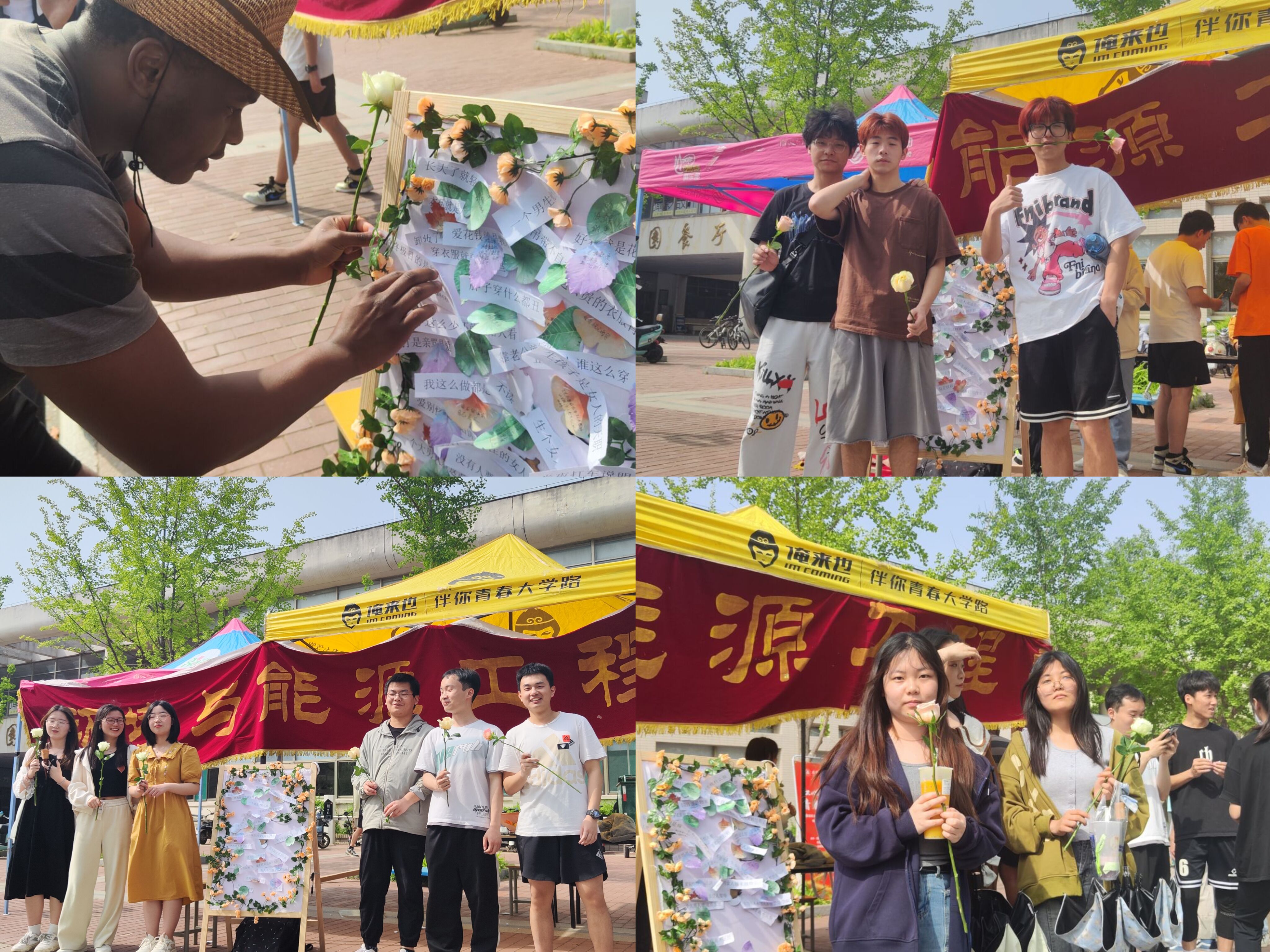4月12日,环能学院在南区北食堂广场举办不被“标签”束缚的青春心理活动,鼓励同学们乐观自信,勇敢做自己。活动中,同学们在事先准备好的展板上选择标签并撕下,现场写出撕下该标签的原因或留一句鼓励的话,便可领取一支鲜花。撕掉的标签,赠与的玫瑰,是不被世俗束缚的自由,鼓励每一位同学都能够撕去标签,不被定义,拥抱最澄澈明亮的自己。