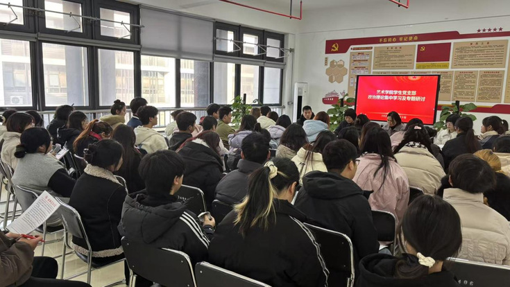 本网讯 12月13日,艺术学院召开了学生党支部党员政治理论学习及专题研讨会,全体学生党员参加了此次会议。