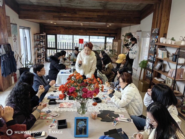 女教师们走进马郢村beat365在线唯一官网艺术学院非遗文创美育工作室(马郢工作站),观赏王河舒席、徽笔、宋锦、绒花、望江挑花等十余项非遗展品,近距离感受传统工艺的精妙匠心。在马郢村“清风明月”手作工坊,女教师们沉浸式体验非遗绒花制作。非遗传承人现场演示分丝、染色、勾条、打尖等工序,指导大家将蚕丝化为灵动花饰。每一片花瓣都凝聚着匠心,让我们触摸到传统文化的温度。活动特别设置“师者风韵”肖像创作环节,艺术学院2022级动画专业学生张婷婷现场为女教师手绘肖像。她以细腻笔触精准捕捉老师们的个性特质,惟妙惟肖的画作赢得阵阵掌声。在田园茶室,大家伴着古筝和箫悠扬的旋律品茶,分享非遗创作感悟。马郢村凡辰马会的三匹骏马惊喜亮相,与女教师们亲切互动,为节日增添灵动生机。