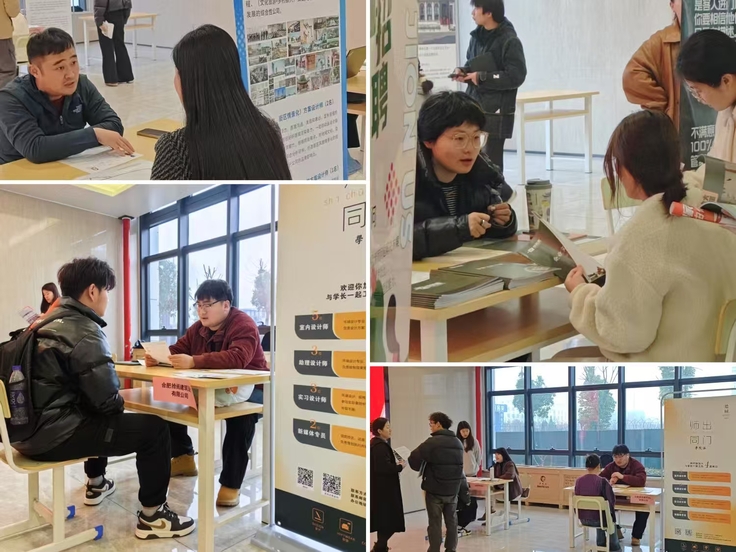 本网讯 为进一步深化校企合作、拓宽毕业生就业渠道,3月12日下午,艺术学院邀请中建深圳装饰有限公司安徽分公司等12家建筑装饰企业来校开展专场招聘会,并就企业用人需求、校企合作、人才培养等方面开展座谈,校党委常委、副校长李早出席座谈会并与用人单位亲切交流,会议由艺术学院党委副书记(主持工作)潘青主持,艺术学院党委副书记任磊及毕业班辅导员参会。