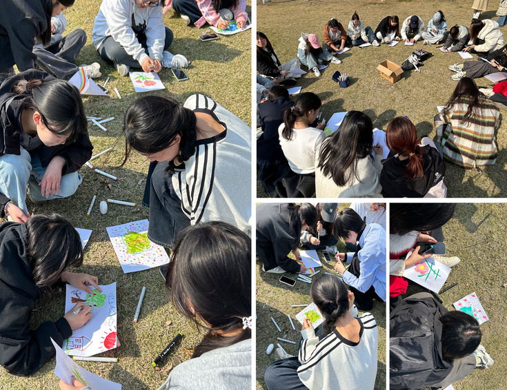 在春日诗画创作环节,大家铺开画纸,调色挥毫,用画笔勾勒出心目中的春天。繁花似锦的花园、垂柳依依的河畔生动展现出春天的生机与活力,赋予诗句色彩温度,诗中有画,画中有诗,两者相得益彰,碰撞出奇妙的艺术火花。