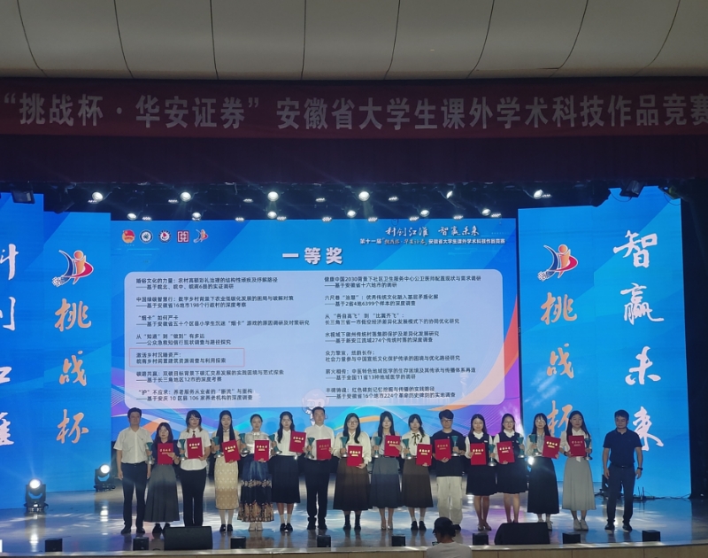 本网讯 6月12日,第十一届“挑战杯・华安证券”安徽省大学生课外学术科技作品竞赛决赛在安徽财经大学圆满落幕。艺术学院研究生洪宇坤、李昕玥等同学的作品《激活乡村沉睡资产:皖南乡村闲置建筑资源调查与利用探索》凭借精准选题、扎实调研与创新理念,荣获省级一等奖,取得了艺术学院在该类赛事的最好成绩。