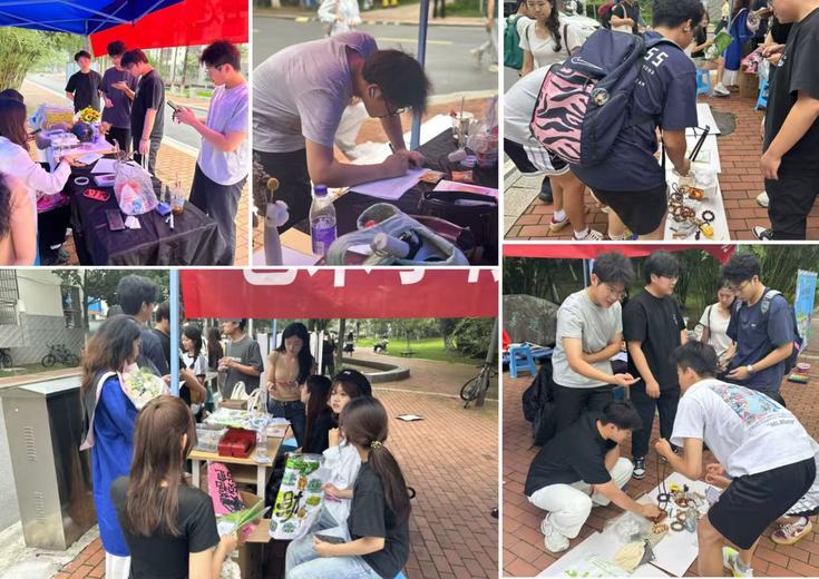 “时光杂货铺”活动现场气氛热烈。毕业生们踊跃设摊,展示、售卖、交换满载大学记忆的二手书籍、特色纪念品与精巧的自制工艺品。线上交易平台也同步高效运转,为大件物品流转提供便利。这个活动不仅有效促进了资源的循环利用与共享,更以物品的流转为纽带,无声地传递着同学间的深厚情谊,让惜别之情在实用与环保的实践中自然流淌。